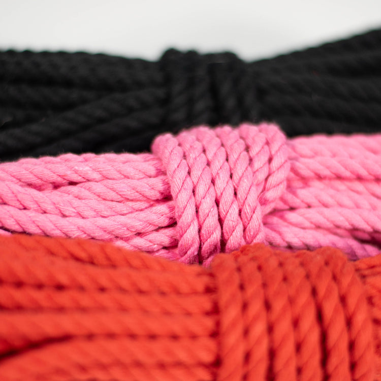 While we personally prefer jute, we understand the need for variety. Our cotton ropes are perfect for playful, intimate moments, whether at home or a gathering. These ropes are soft and gentle, making them ideal for casual play. They are budget-friendly and easy to care for, as you can wash them in the machine or by hand.